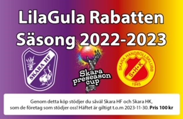 Nu är det här! Rabatthäftet där Skaras båda handbollsklubbar, Skara HF och Skara HK, samarbetar kring det lila/gula häfte som snabbt kan ge tillbaka en satsad hundralapp. I dagarna börjar försäljningen av årets häften som ger alla köpare möjligheter till att göra en god affär inför julen. Det är drygt 30 Skaraföretag som medverkar genom att erbjuda olika rabatter inom sin verksamhet. -Detta är en aktivitet där både företag och de båda handbollsföreningarna gynnas. Vi arbetar alltid med den viktiga målsättningen att vi ska vara en värdefull samarbetspartner i det lokala samhället, säger Skara HF:s ordförande Håkan Persson. Det lila/gula häftet kommer säljas av de båda föreningarnas ungdomar och kostar 100 kr. Häftets rabatter gör det snabbt till en lönande affär för köparen. En eller ett par av rabatterna kan direkt ge tillbaka den satsade hundralappen. Samtidigt gynnas de flickor och pojkar som spelar handboll i Skara